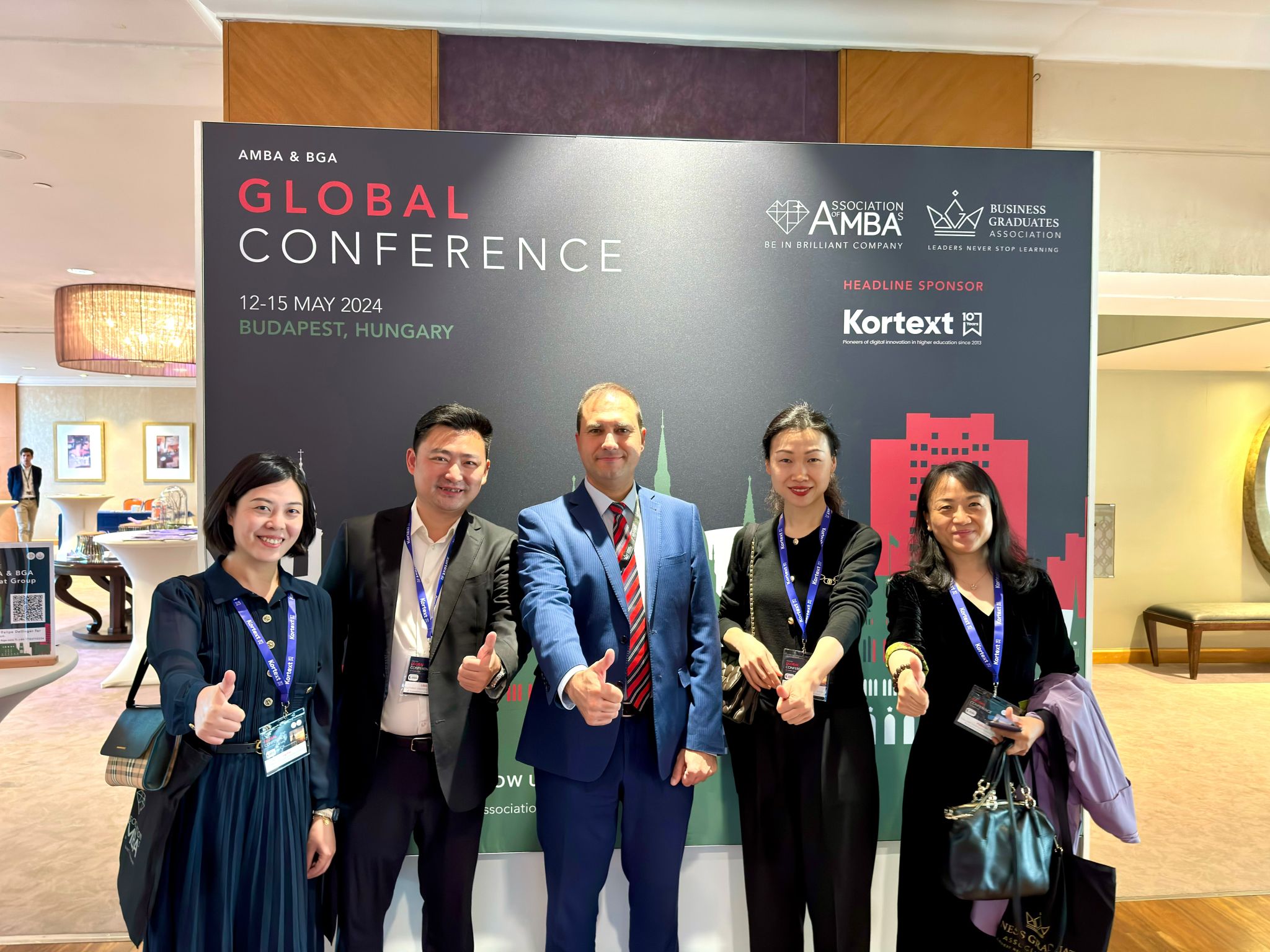 2024年5月12-15日,AMBA&BGA全球年会在匈牙利布达佩斯召开,来自全球百余所商学院的代表齐聚一堂。经济管理学院党委副书记晏理斌、专业学位教育中心主任李海波、国际认证中心主任王一帆、副主任范婷代表学院赴匈牙利参加了本次盛会。